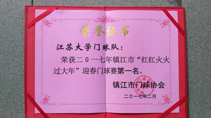 近日,江苏大学门球队在镇江市门球协会举办的2017镇江市“红红火火过大年”迎春门球赛中获得“第一名”的好成绩。鉴于江苏大学门球协会的突出成绩,我校门球协会还被镇江市门球协会授予“2017年度镇江市门球运动先进集体”的荣誉称号。