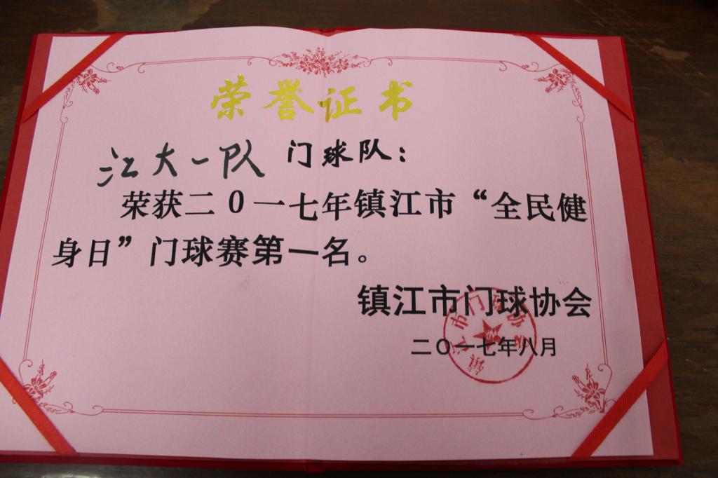 8月8日是“全民健身日”,我校门球队应邀参加由镇江市门球协会举办2017“全民健身日”门球赛,经过激烈角逐,我校门球队发挥出色,配合默契,获得了第一名的好成绩。