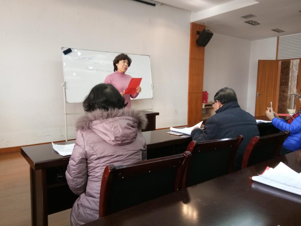 12月19日下午,江苏大学第三期老干部英语口语培训班在教工活动中心203室顺利结业。老同志们精心准备了合唱、诗歌朗诵、情景对话等多种形式的英文节目,庆祝结业并迎接即将到来的新年。